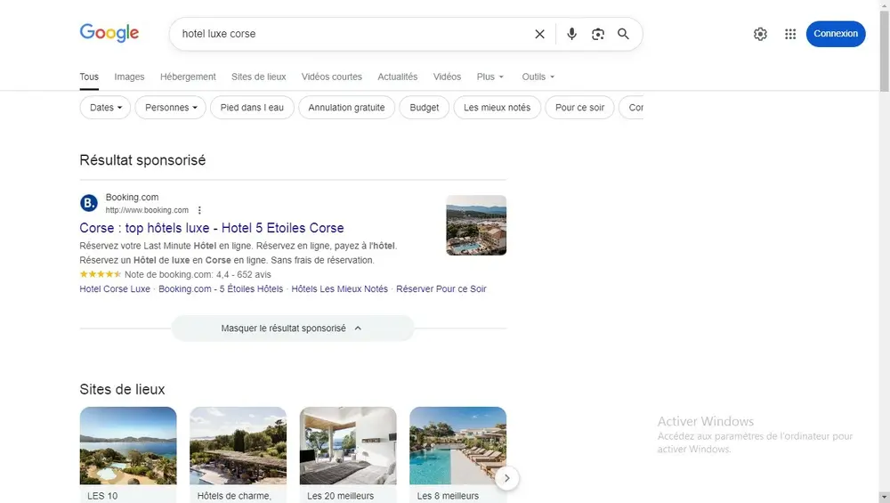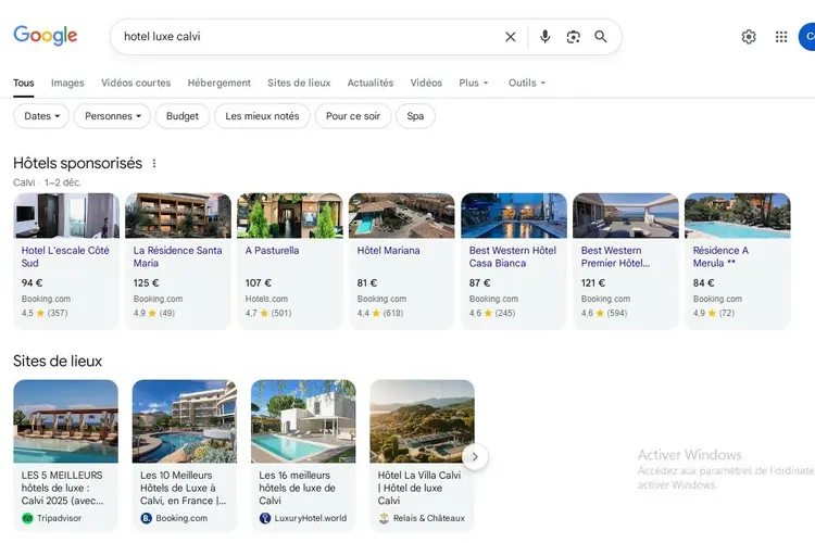 L'hôtellerie indépendante lutte contre une double concurrence : les plateformes de réservation et les chaînes hôtelières aux budgets marketing considérables. Un hôtel de charme à Calvi, aussi remarquable soit-il, peine à émerger sur 'hôtel Calvi' face à Booking ou Expedia. La solution réside dans les niches - se positionner sur 'hôtel boutique Calvi' ou 'maison d'hôtes de charme Balagne' avec des contenus qui valorisent la singularité de l'établissement.
